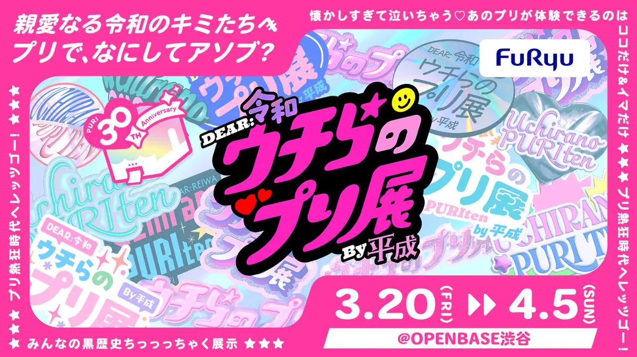 本展は、フリューのプリ機30周年記念プロジェクトの集大成となる企画。平成世代には懐かしく、令和世代には新鮮に映る"プリのアソビ方"との出会いを届けるイベントになるという。