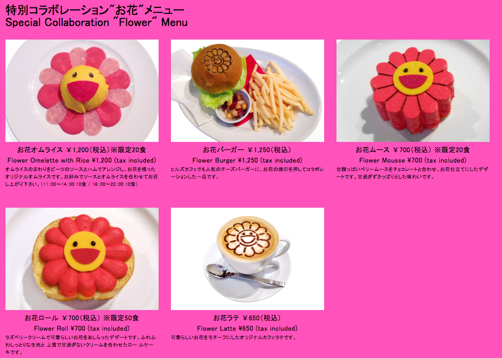 お花は村上隆の代表的なモチーフであり、度々作品の発表や展示会(六本木ヒルズ『村上隆のOHANA-OHANA-OHANA』)、カフェとのコラボ(六本木ヒルズ『お花カフェ』)も行われている。