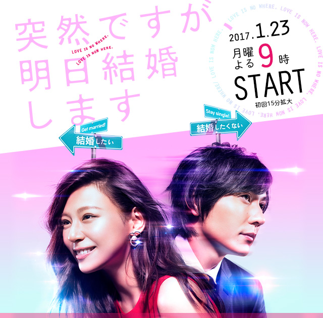 『突然ですが、明日結婚します』とは、2017年1月23日から毎週月曜21時よりにフジテレビで放送されるテレビドラマ。