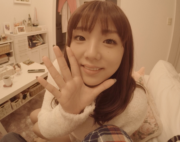 87cmのGカップでロリ巨乳ジャンルを牽引。写真で自分の胸を見ると「でか、って思う。なんか丸い。横にデカイし張ってる感じがする」ということだ。
