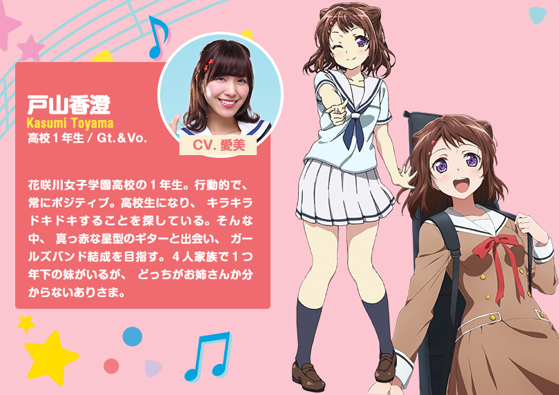 大好きだった歌をバカにされてから、自分表出せなくしまった引っ込み思案な高校1年生・戸山香澄。憂鬱な日々を過ごす彼女が運命に導かれ、 ギターや仲間たちと出会い、音楽(キズナ)を紡いでいく!