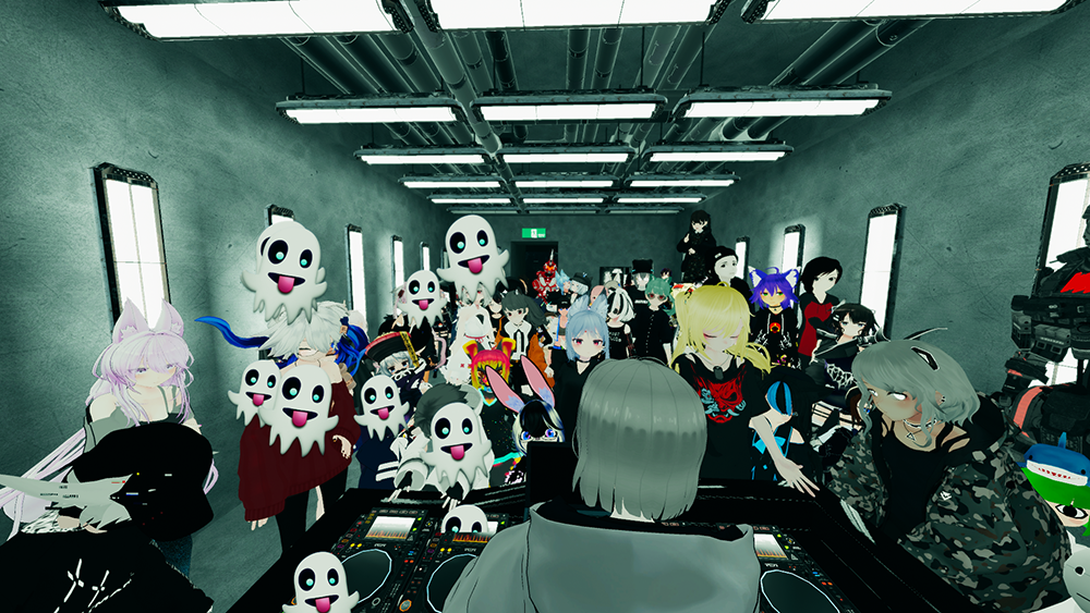 毎週金曜、多くのユーザーが思い思いのアバターで賑わいを見せている集い、電脳空間上のクラブのパーティーを楽しんでいる。