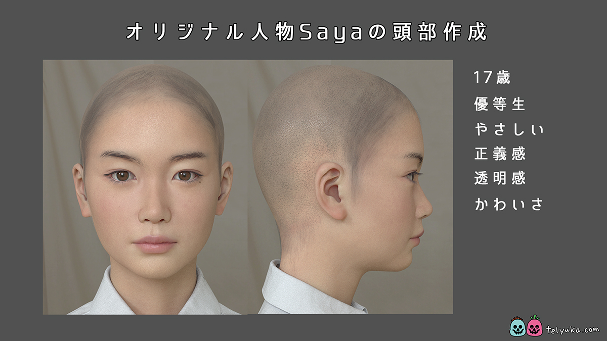 3DCGモデルの制作にあたっては、実在する俳優等をモチーフにする場合が多いがSayaについててはそういったた人物は存在しない。